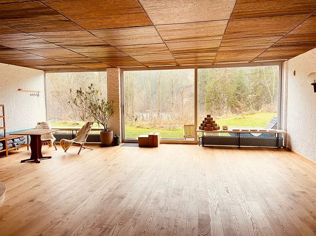 Unser Seminarraum (ca. 75 qm) liegt ruhig und mitten in der Natur. Große Glasfenster, die sich öffnen lassen, bieten einen herrlichen Blick zur Flusslandschaft der Trettach. Hier hört man nichts ausser dem Rauschen der Trettach...